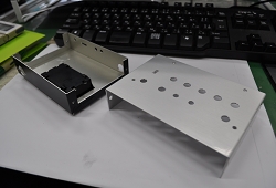 既存で販売されているケースへの追加工です。専門の道具を使って加工しますので精度バッチリです。このケースには電子機器がマウントされます。