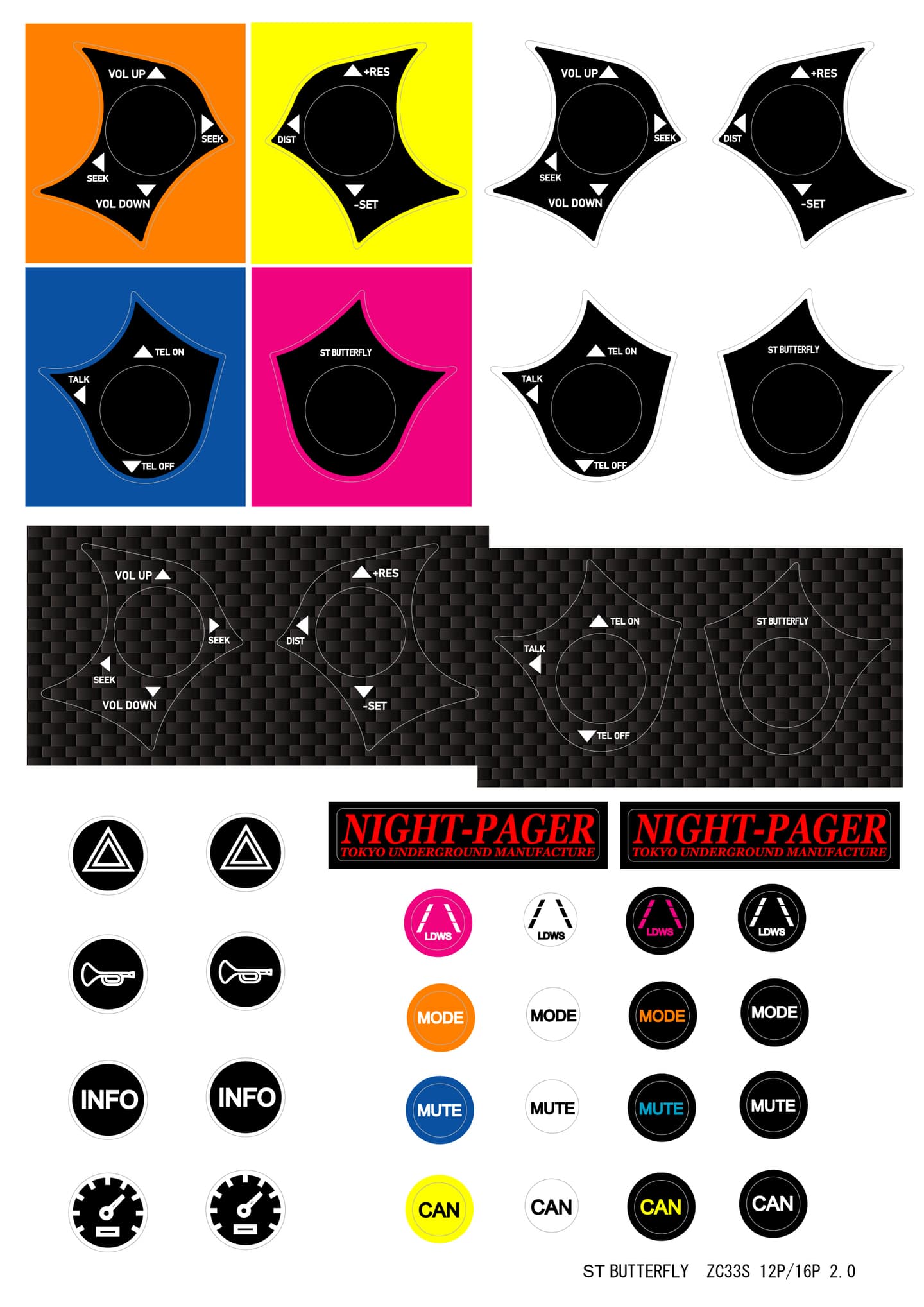 注:ハザードスイッチはオプションのハーネスキットを使用することで使える機能となります。作動はボタンを押している間のみ「点滅」となります。また、オプションハーネスを使用しなかった場合、ST BUTTERFLY本体のボタンは押しても何も反応しませんがイルミネーションオンで青に点灯します。