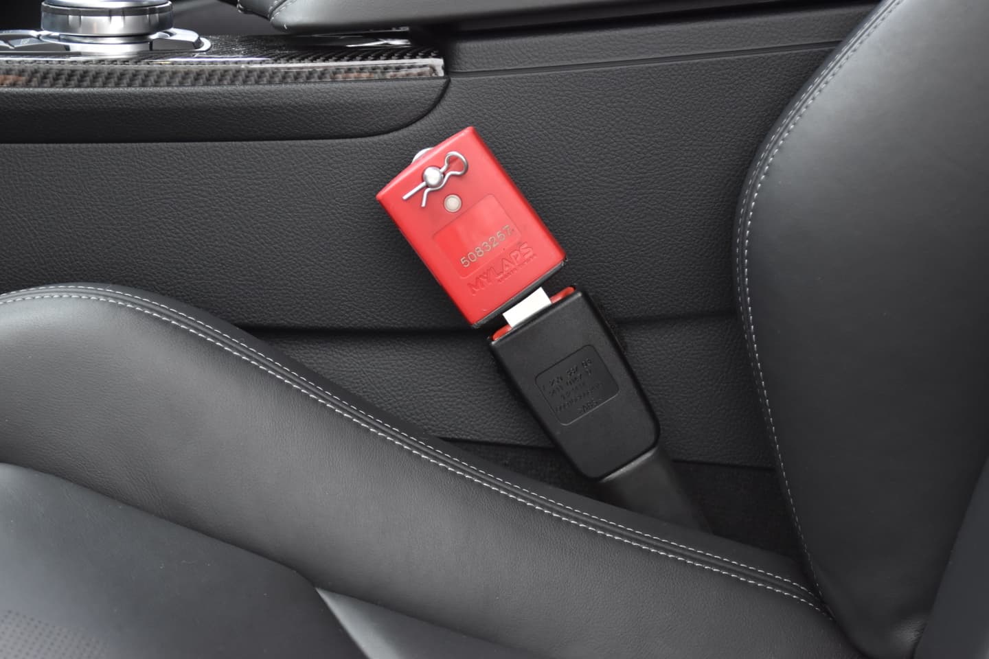 サーキット走行会参加時にサーキット側から貸し出しされるLAP計測器は国内ではツインリンクもてぎ、富士スピードウェイ、鈴鹿サーキット、SUGO国際サーキットなど多くのサーキットででTranX Proシステム(AMB社製)が使用されています。このLAPホルダーを使うことで計測器をシートベルトバックルに確実に取付ることが可能です。