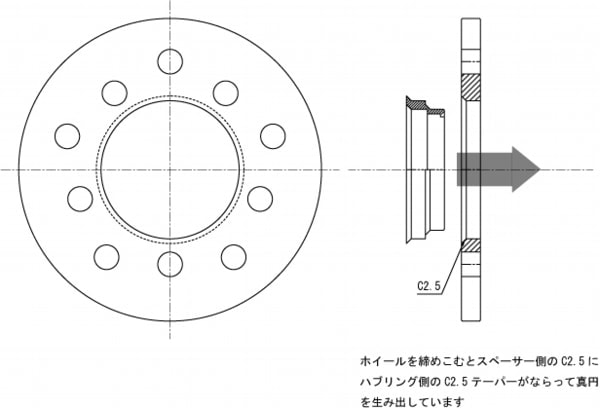 ※1:スペーサー内径がΦ56になっています。ハブリングは付属されません(設※2:純正ハブの突き出し量は9.5mm以内のタイプにしか使用できません